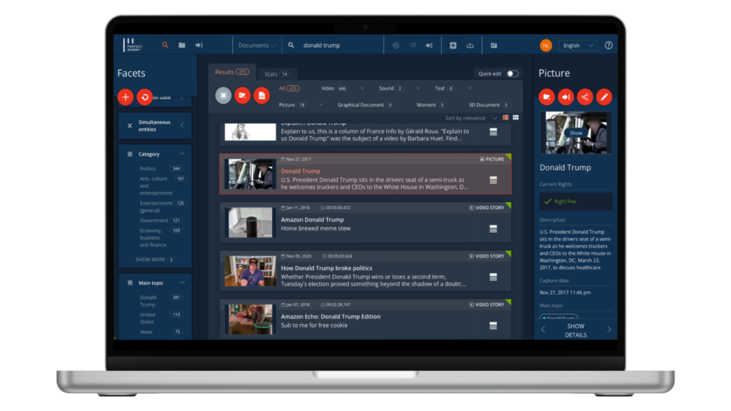 Perfect Memory ist ein Softwareunternehmen und eine Wissensmanagement-Plattform, die sich auf die semantische Anreicherung von Organisationsdaten und -Inhalten spezialisiert hat. Angetrieben von semantischen Technologien und künstlicher Intelligenz ermöglicht seine MAM-Plattform Organisationen, komplexe Medienressourcen zu strukturieren, zu bereichern und zu nutzen und Daten in hochwertige Informationen zu verwandeln. Mehr erfahren: www.perfect-memory.com